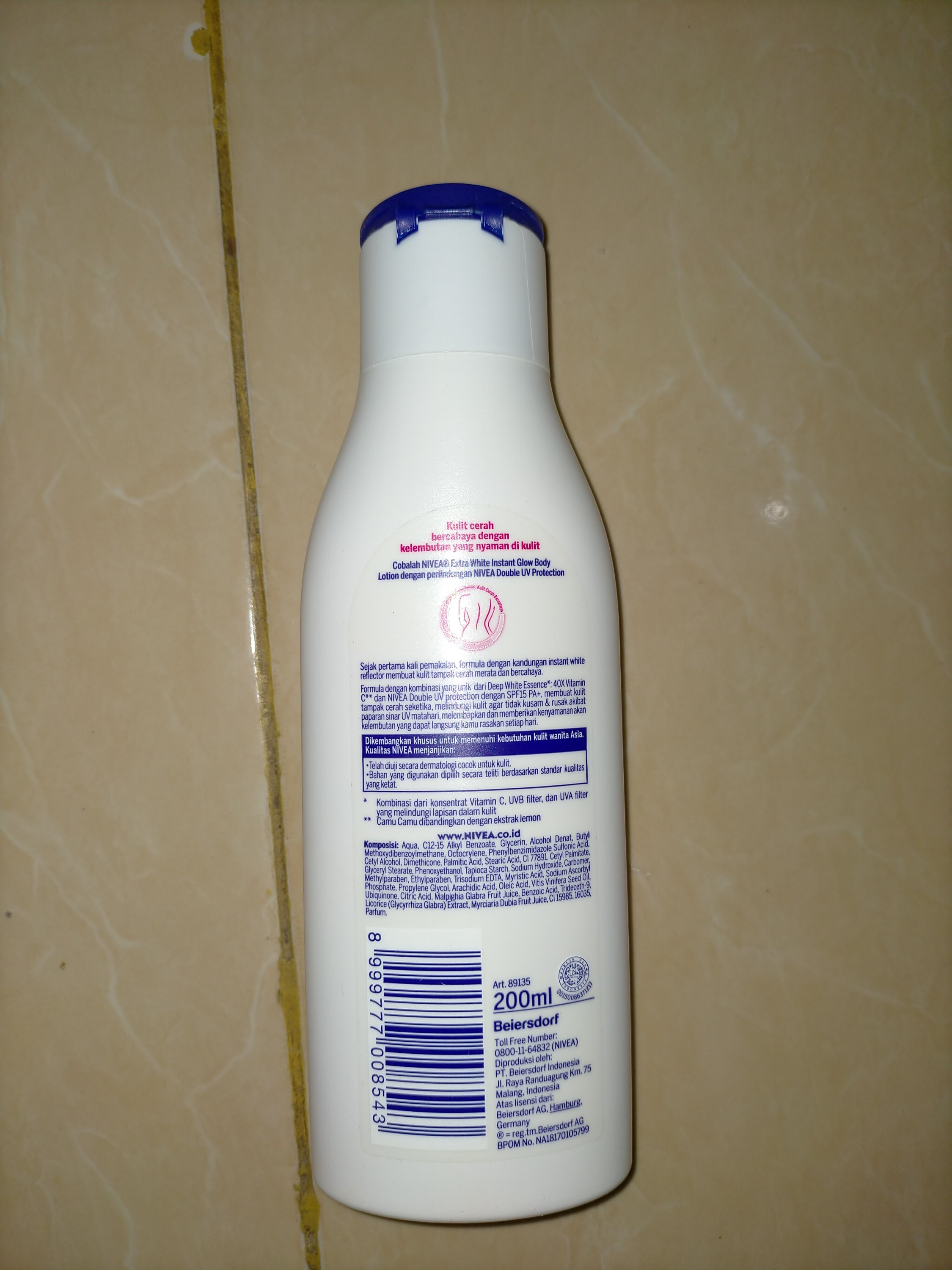 Di belakang kemasan tertulis sejak pertama kali pemakaian, formula dengan kandungan instan white reflector mampu membuat kulit tampak cerah merata dan bercahaya. Formula dengan kombinasi yang unik dari deep white essence 40 * vitamin C dan Nivea double UV protection dengan SPF 15 PA+ plus membuat kulit tampak cerah seketika melindungi kulit agar tidak kusam dan rusak akibat paparan sinar UV matahari melembabkan dan memberikan kenyamanan akan kelembutan yang dapat langsung kamu rasakan setiap hari.